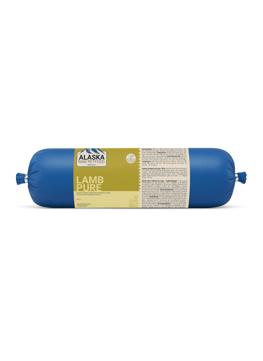 85% Lam: pens (40%), bevleesde ribben (10%), hart (10%), lever (10%), vlees (5%), vet (5%), long (5%), 15% groentemix: wortel (5%), spinazie (5%), bloemkool (5%).