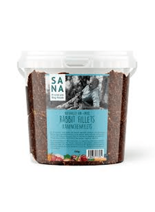 Al het goede van boerderijvers konijnenvlees, voorzichtig luchtgedroogd zonder de nare ingrediënten. De filets zijn graan- en glutenvrij, bevatten veel eiwitten en zijn licht verteerbaar. Maar het belangrijkste: ze zijn absoluut heerlijk! De Sana Dog filets zijn niet alleen geschikt voor alle rassen, maten en leeftijden, ze zijn ook perfect voor honden met allergieën of voedselovergevoeligheden omdat ze geen tarwe, maïs, soja, zuivelproducten of onnatuurlijke toevoegingen bevatten.